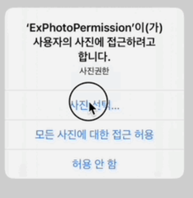 - 사진 선택 옵션을 선택하면 애플은 자동으로 앱을 다시 실행할때, 사진 선택 권한인 상태(= limited)에서 다시 사진 권한을 요청하면 아래 팝업이 노출