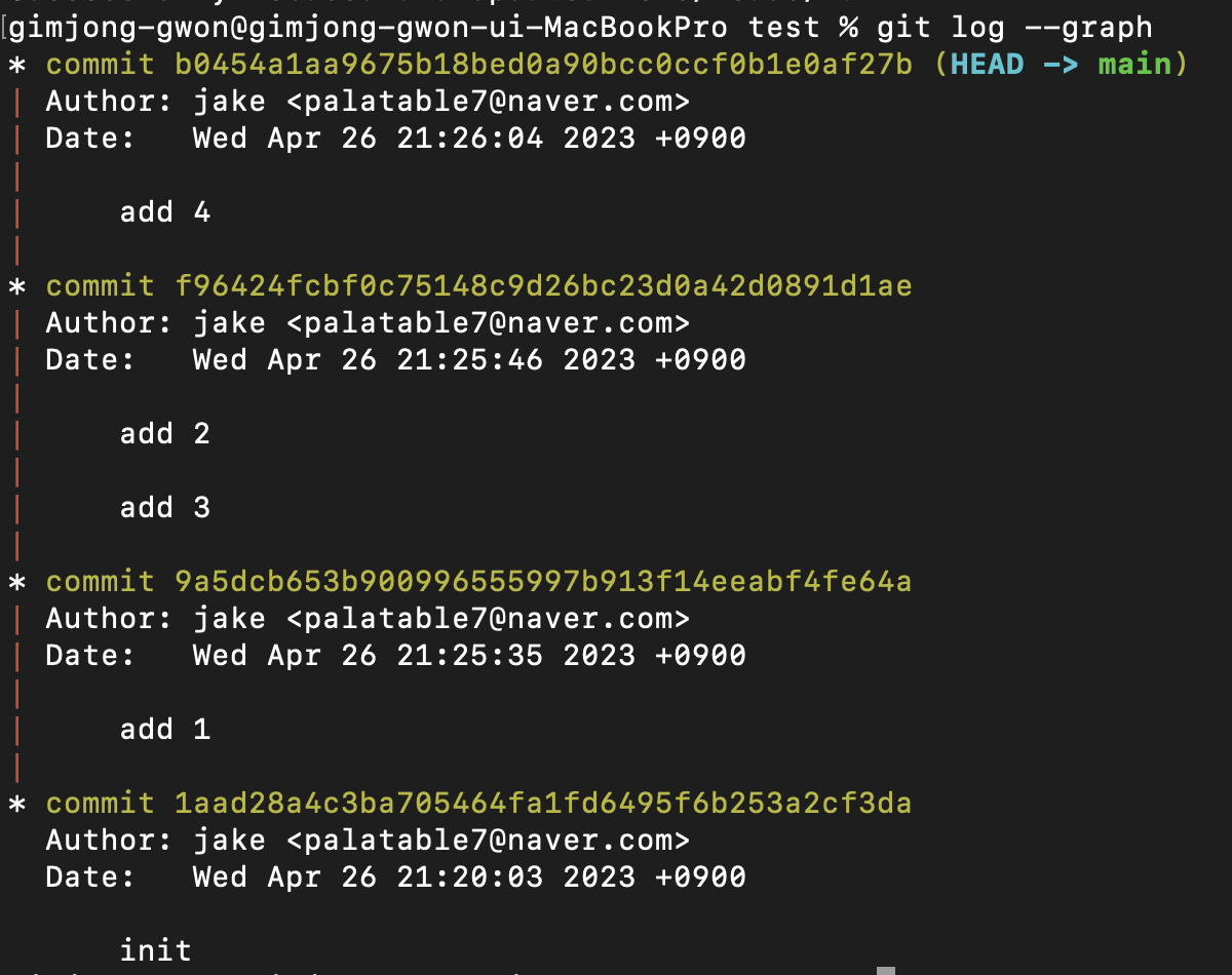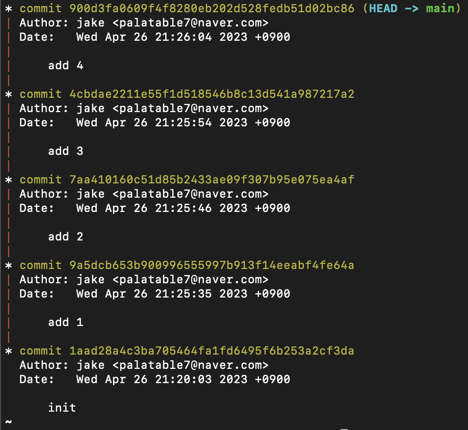 (만약 위에서 add 4를 지우지 않았으면 add 4커밋도 생성되어 있을것)