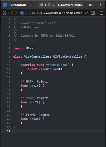 [iOS - swift] Notation 사용 방법 (MARK, TODO, FIXME, 단축키, 현재 파일 내 검색) 본문