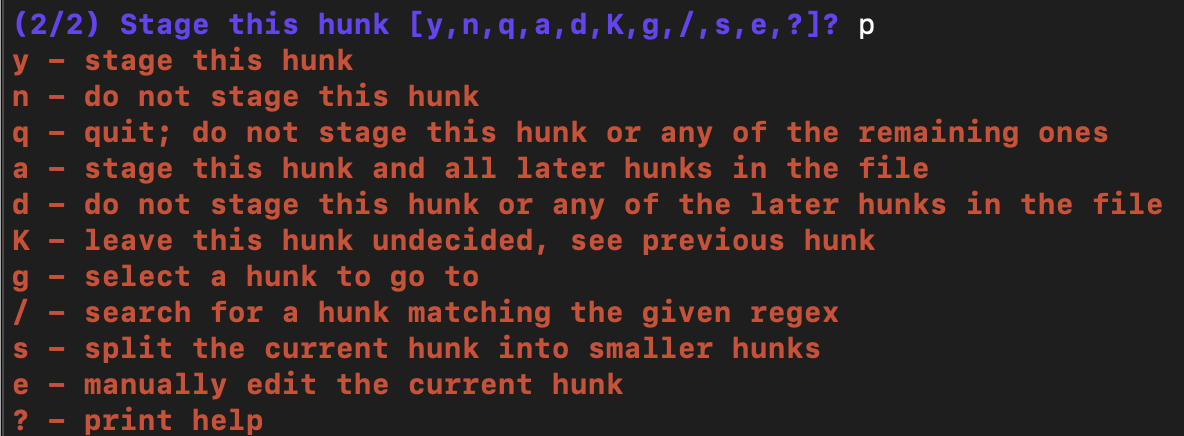 [1/2] Stage this hunk [y,n,q,a,d,j,J,g,/,e,?]?