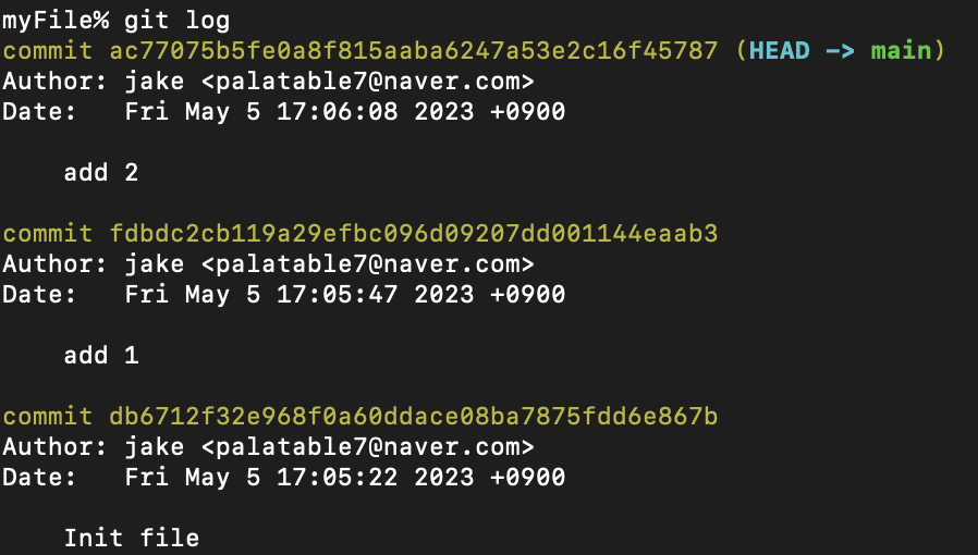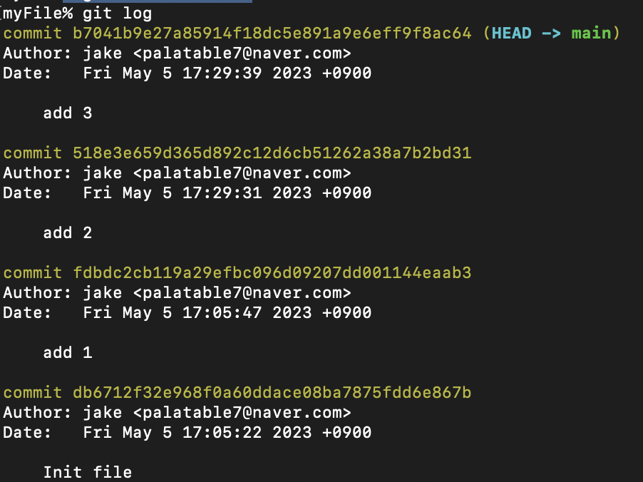 - 아래 예제를 계속 이어가기 위해 다시 add 3 커밋