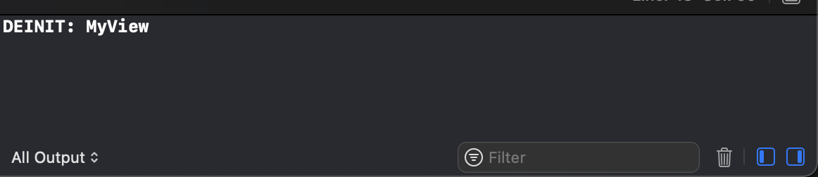 - 버튼을 눌렀을 때, removeArrangedSubview를 호출하는 코드를 놓고 이때 "DEINIT: MyView"가 호출되는지 확인