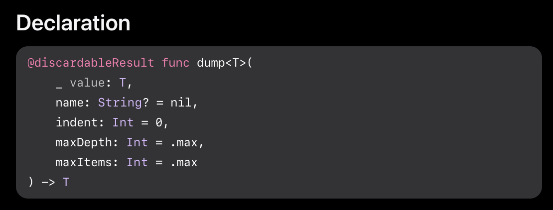 https://developer.apple.com/documentation/swift/dump(_:name:indent:maxdepth:maxitems:)