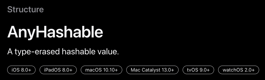 - 예전까지만해도 any 키워드로 type erase를 할 수 없었으므로 AnyHashable과 같이 wrapper로 따로 생성하여 해결이 가능