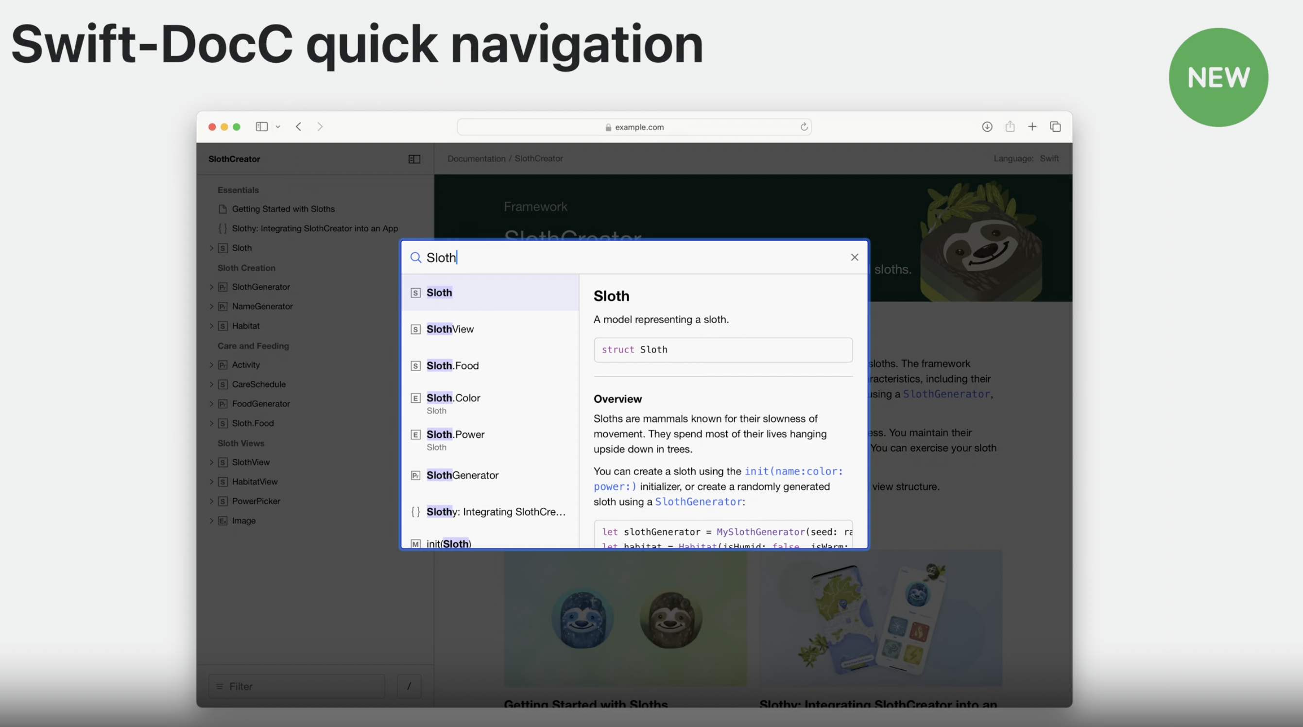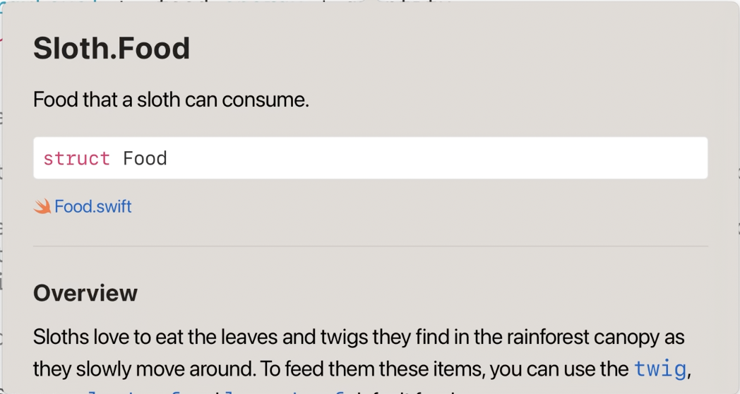 - Swift-DocC를 잘 작성해놓으면 이제는 애플 swift 문서처럼 검색도 가능하고, 설명도 깔끔하게 있기 때문에 자기 자신이 만든 코드를 아래처럼 문서화와 체계적으로 살펴볼 수 있는 하나의 문서와 소스코드의 통합을 이루는 것