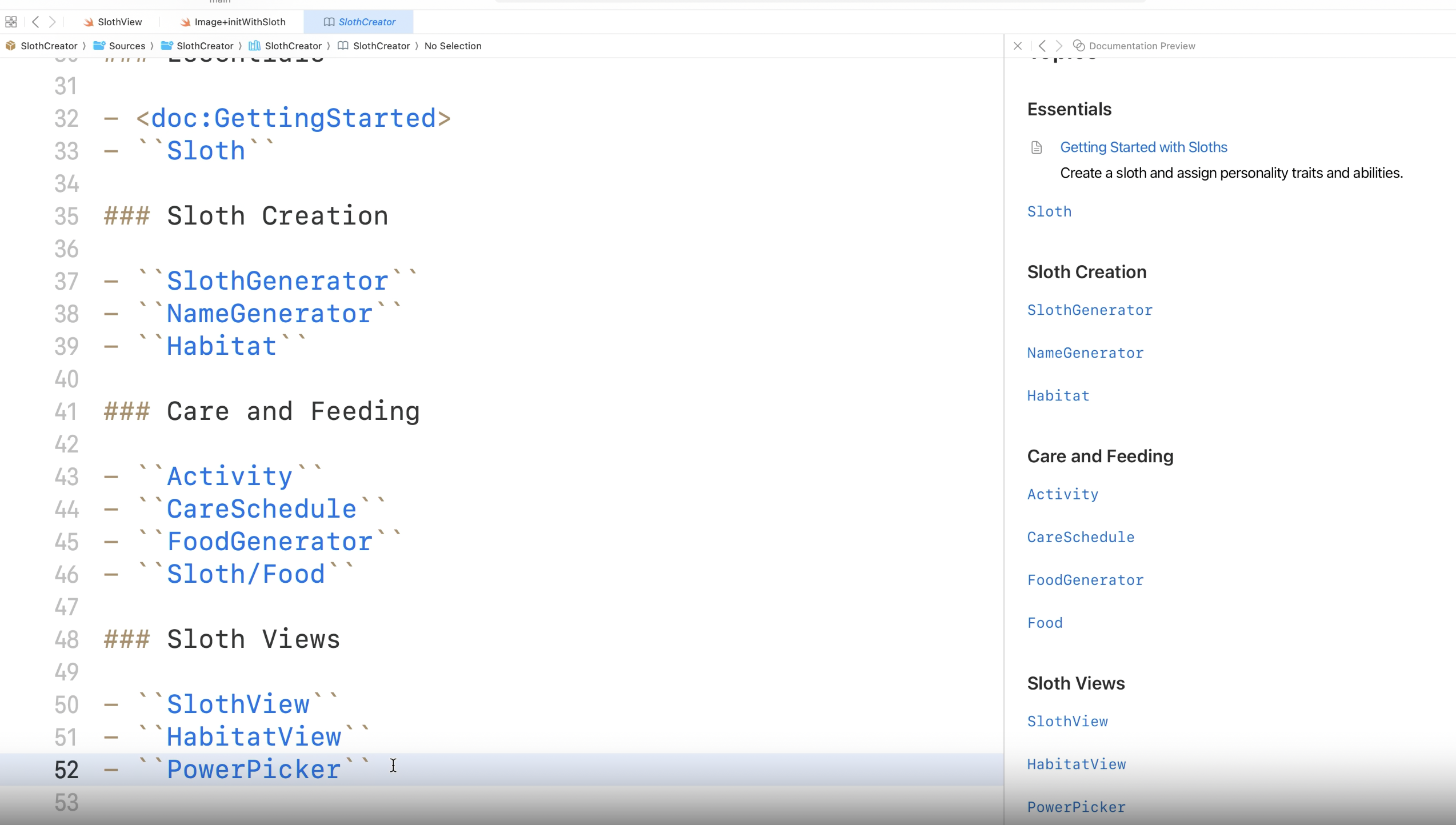 - Xcode15에서 새로운 Documentation Preview 에디터를 사용하여 에디터를 떠나지 않고도 preview로 실시간 확인이 가능