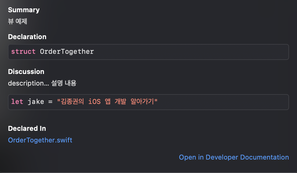 - Xcode의 Quick Help를 사용했을때도 적용되는데 Xcode15부터 기존과는 다르게 표출
