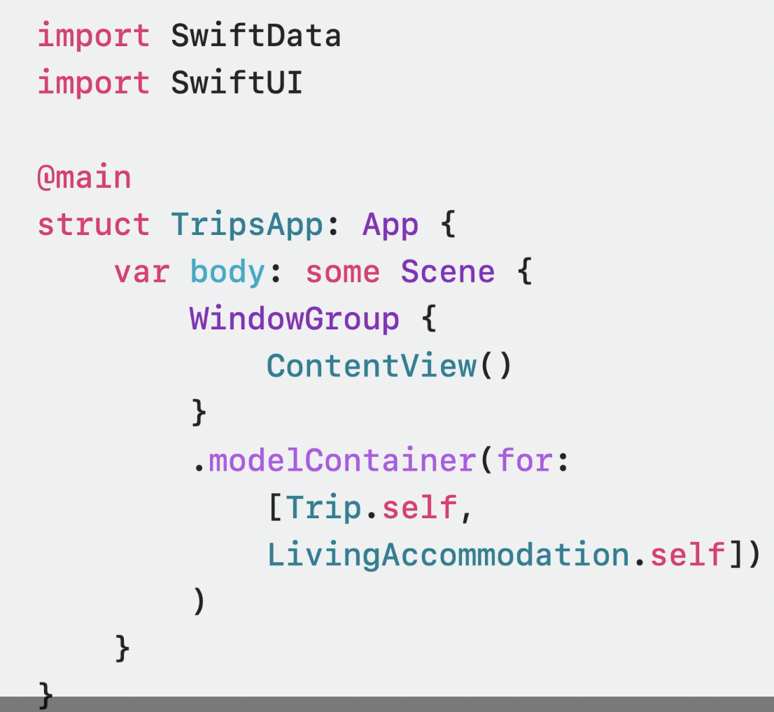 - 데이터 저장소 구성이 매우 쉽게 사용 가능: .modelContainer