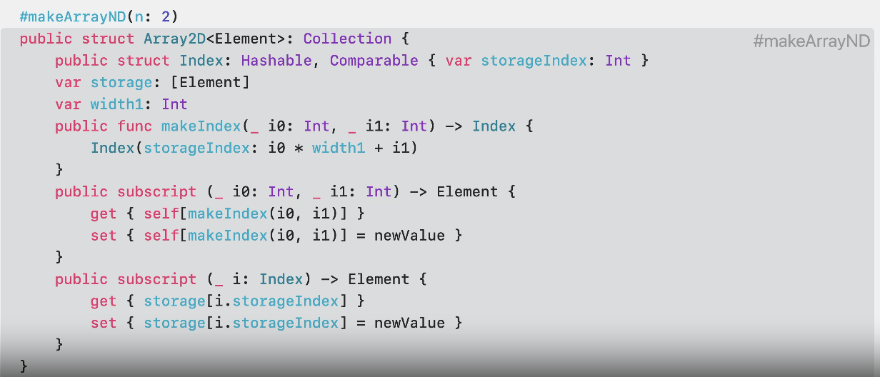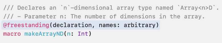 - makeIndex라는 메소드, subscript라는 메소드등을 확장하기 위해서 @freestanding(declaration)을 선언