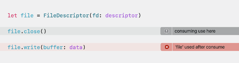 - Swift5.9부터는 ~Copyable을 사용하여 해당 struct가 복사되지 않게끔 강제할 수 있고, deinit 키워드도 사용할 수 있음