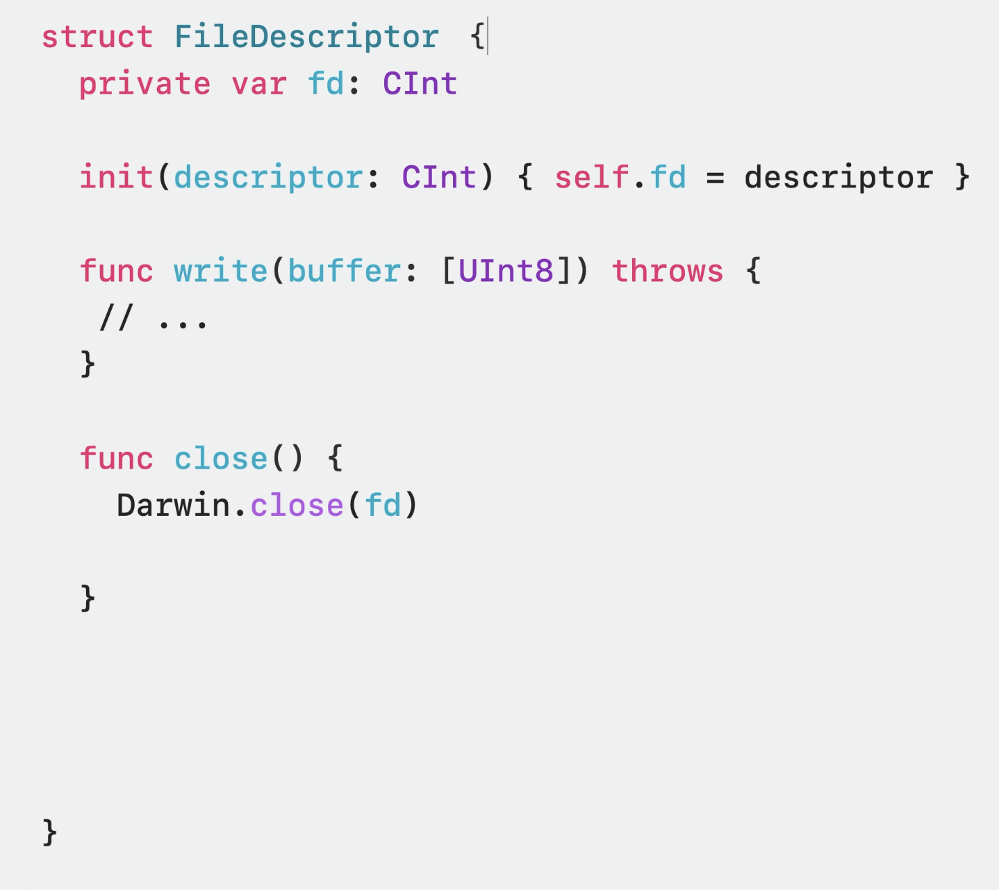 ex) 파일 다루는 파일이 class형태인 경우 데이터 정합성 문제가 발생하므로 struct로 선언하고 이 struct에서도 파일을 닫는 메소드가 필요한데, struct에도 deinit과 같은 키워드가 있으면 사용하는쪽에서 close를 따로 호출해주지 않아도 되는 상태