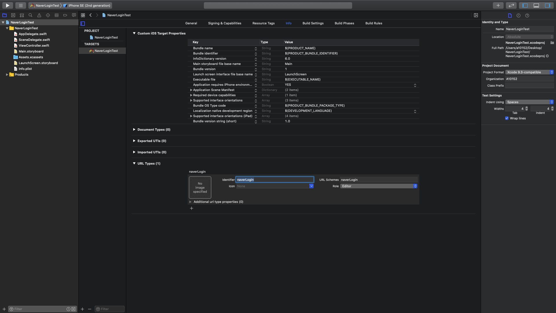 - URL Scheme : 앱의 URL Types에 작성 (반드시 소문자로 작성 -- 대문자인 경우 Safari에서 인증이 잘 안 될수 있는 이슈)