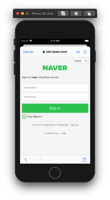 네이버앱이 없을 경우 SafariViewController를 실행하여 로그인 절차 실행
