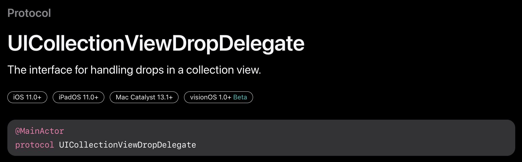 https://developer.apple.com/documentation/uikit/uicollectionviewdropdelegate