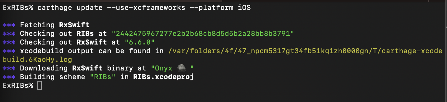 - 아래 명령어로 Carthage를 통해 RIBs 설치