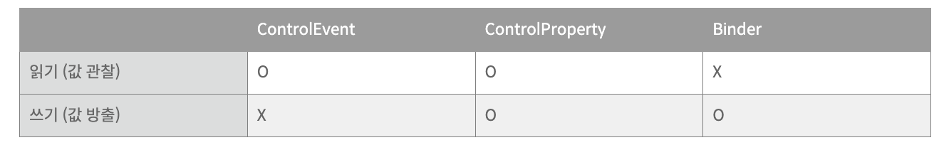 - (getter만 지원하는 또다른 컴포넌트인 ControlEvent를 사용해도 무방)