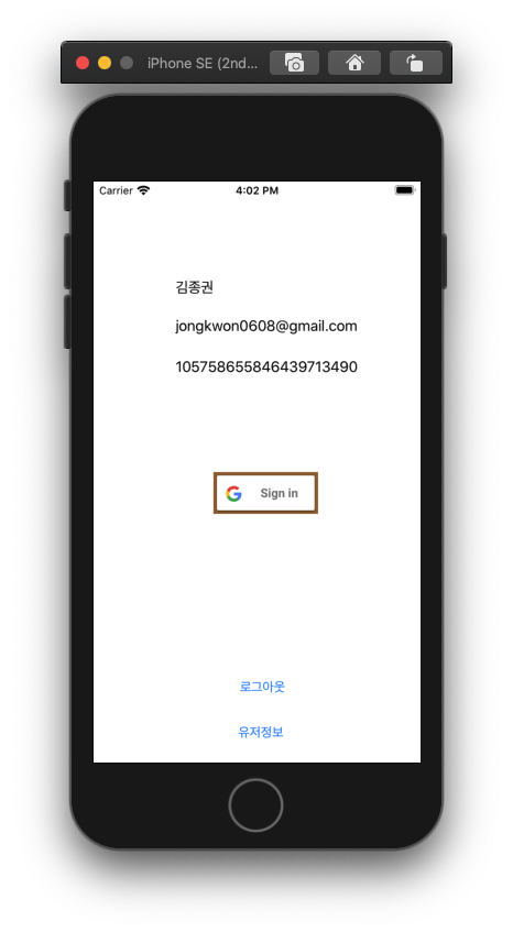- storyboard 방법 : 다음과 같은 방법으로 sign in 요청