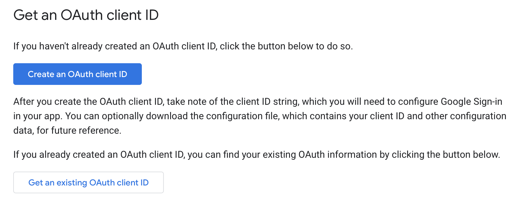 - 위 주소에 있는 "Get an existing OAuth client ID"에서 복사