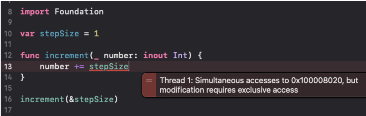 - swift에서는 memory safety을 지키기 위해서 컴파일러 타임에 이런 케이스를 사전에 방어해주기 위해 이런 컴파일 에러를 표출