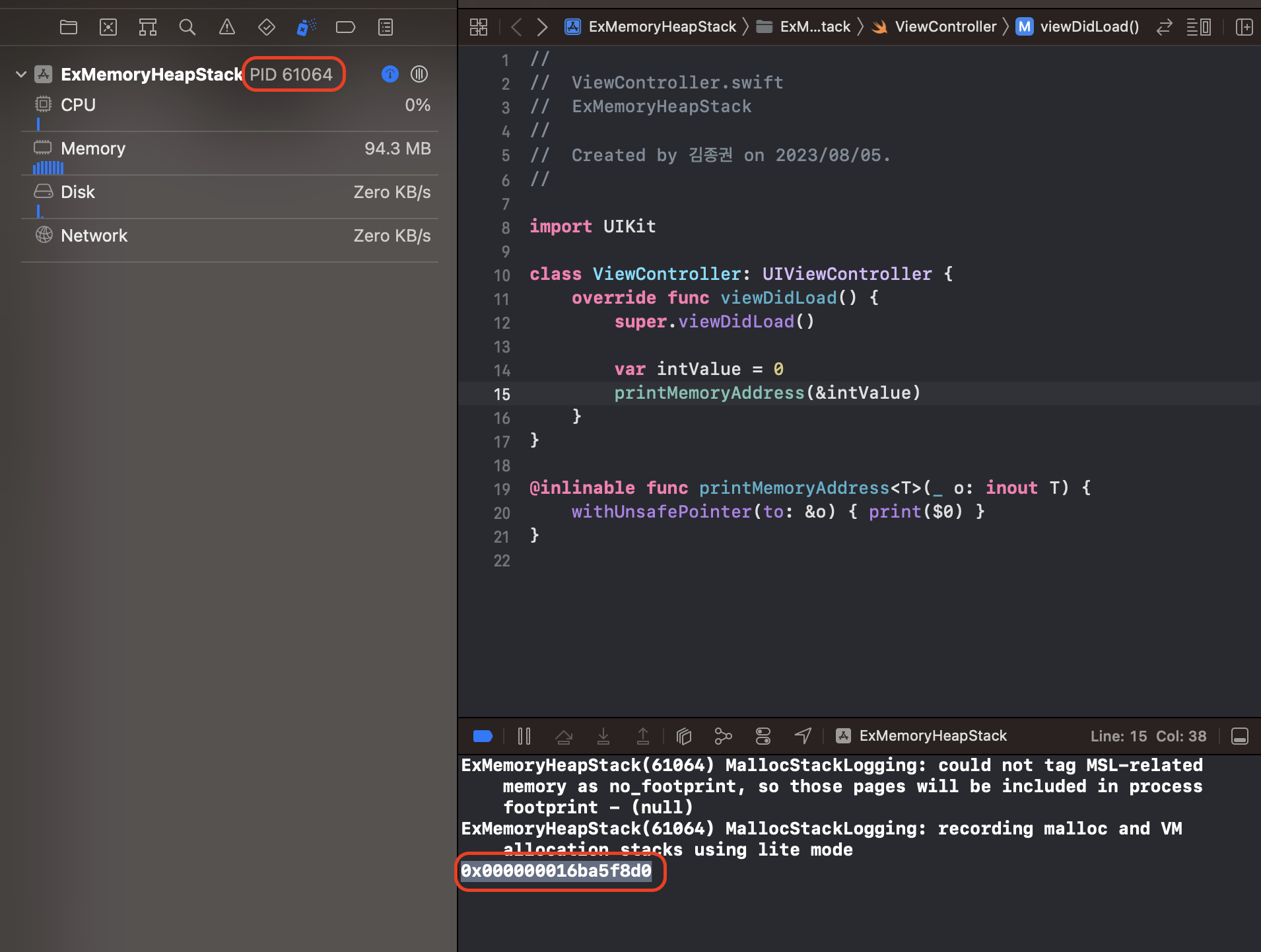 jake-kim 2023. 8. 12. 01:091. Swift 메모리 할당 - address 확인 방법, withUnsafePointer, Memory Graph Debugger, vmmap