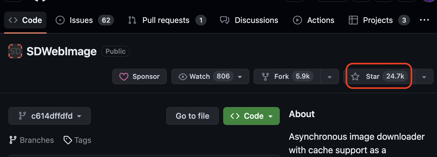 - 포스팅 글 작성 시점 기준으로 24.7k 스타를 가지고 있고, 또 다른 유명한 이미지처리 오픈소스 Kingfisher (21.5k)보다 많은 스타 수를 가지고 있는 오픈소스