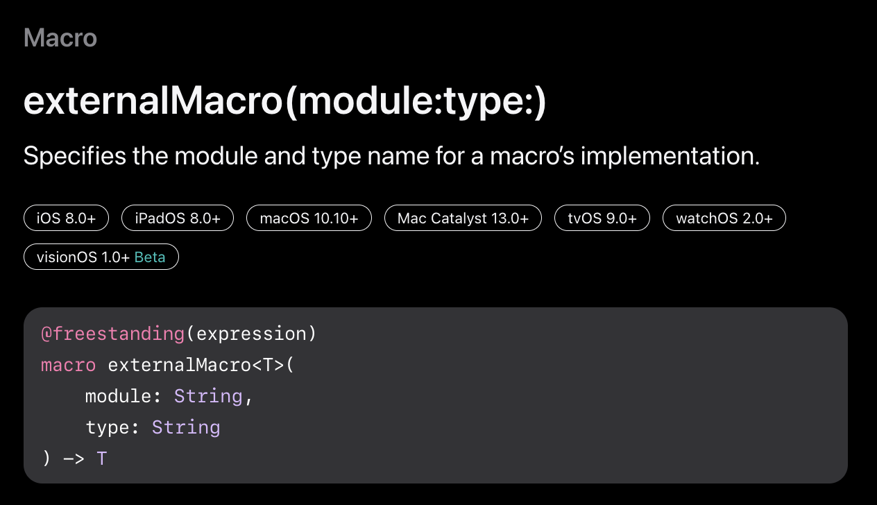 https://developer.apple.com/documentation/swift/externalmacro(module:type:)
