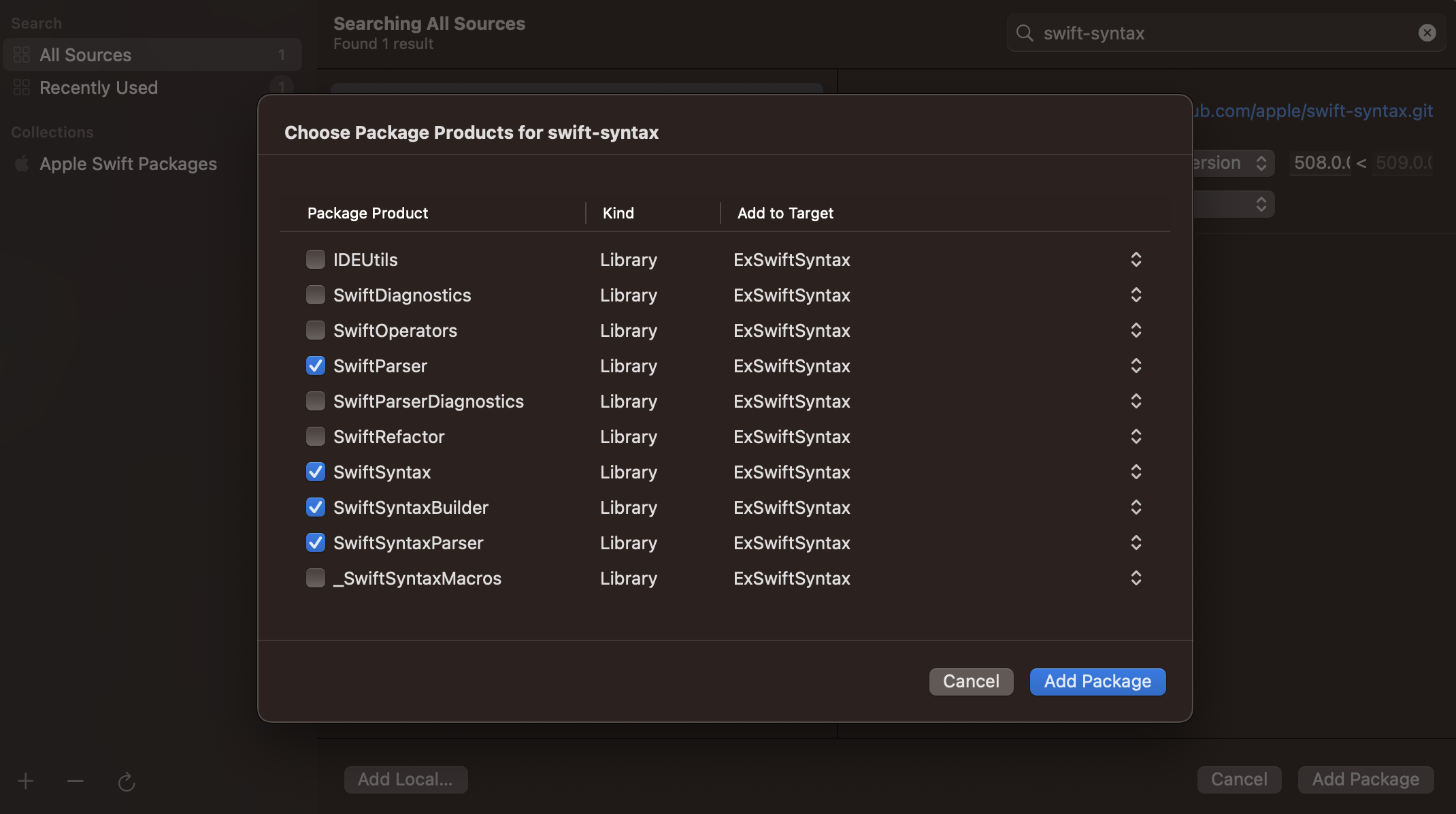 - SPM을 이용하여 SwiftSyntax 의존성 추가