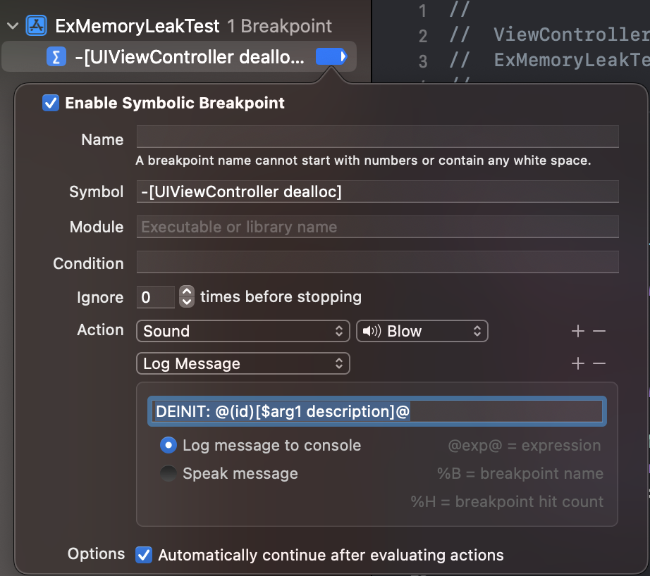 [iOS - swift] Memory Leak 쉽게 테스트하는 방법 (Symbolic Breakpoint) 본문