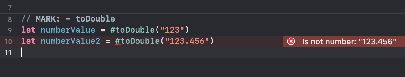 [iOS - swift] Swift Macro 예제 - toDouble, isNumber (문자열로 된 숫자 판단하는 Macro, toDouble) 본문