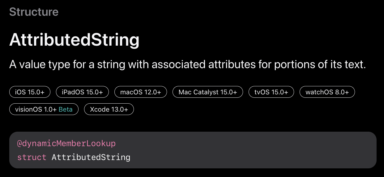 - AttributedString은 iOS 15부터 사용이 가능하며 NSAttributedString을 보완한 형태