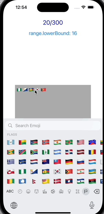 - "some string".count의 값은 단순히 글자 수이며, shouldChangeTextIn에서 현재 포커스를 구할 때 NSRange를 사용하는데 이 값 기준은 UTF16으로 글자의 크기 기준이므로 처리할 때 .count로 처리하면 안되므로 주의