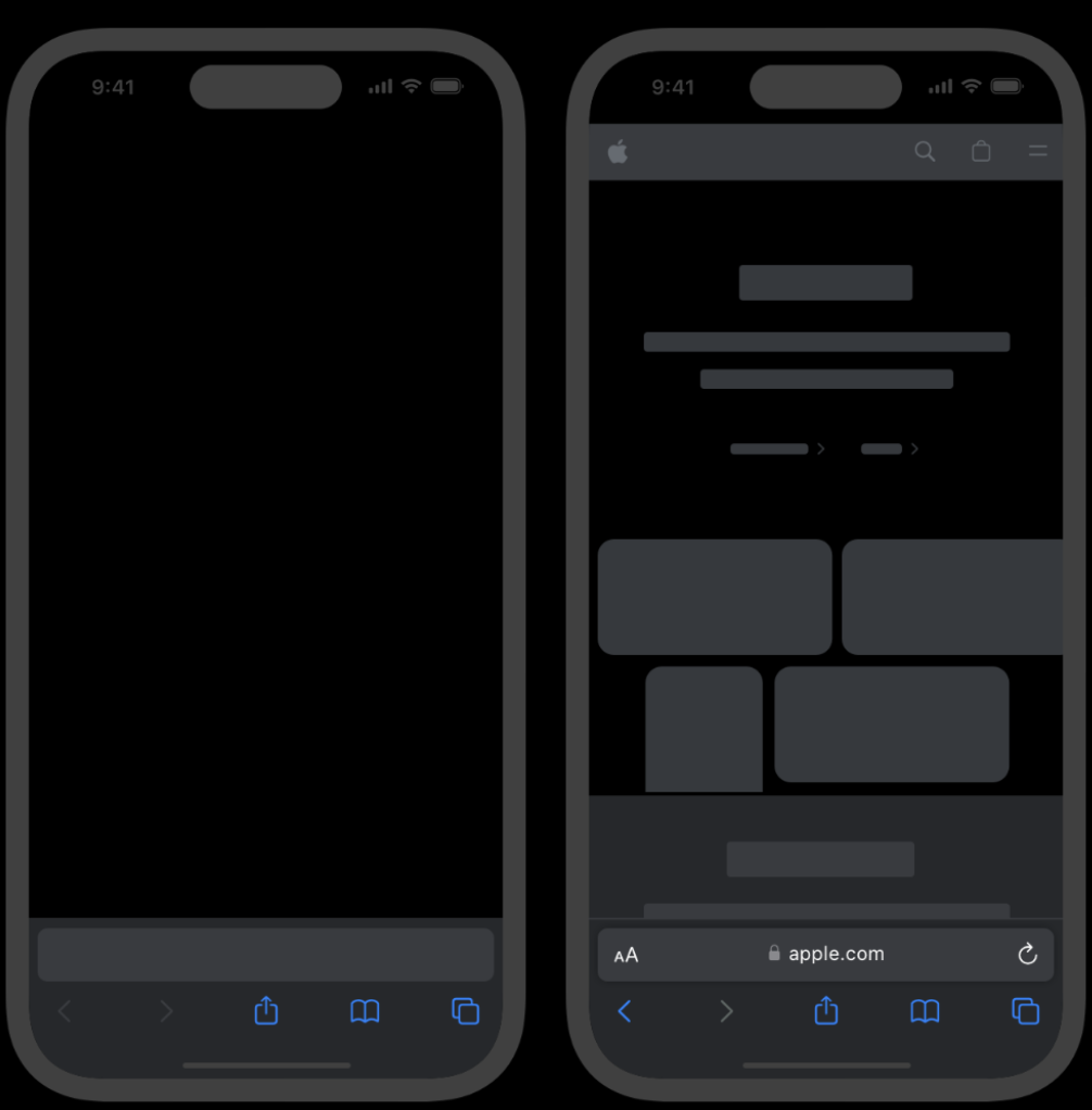 - 앱의 첫 번째 화면과 거의 동일한 시작 화면으로 구현 (ex 위 사파리 화면)