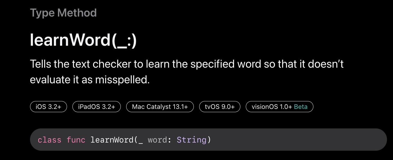 https://developer.apple.com/documentation/uikit/uitextchecker/1621028-learnword