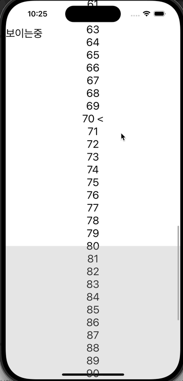 - 이 함수를 스크롤 될때마다 체크하여, 보여질때 표시할 UILabel의 hidden값을 변경