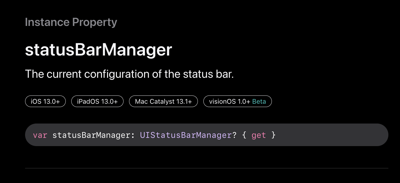 - 애플은 iOS13+에서 statusBar에 대한 값을 관리하는 별도의 statusBarManager를 정의