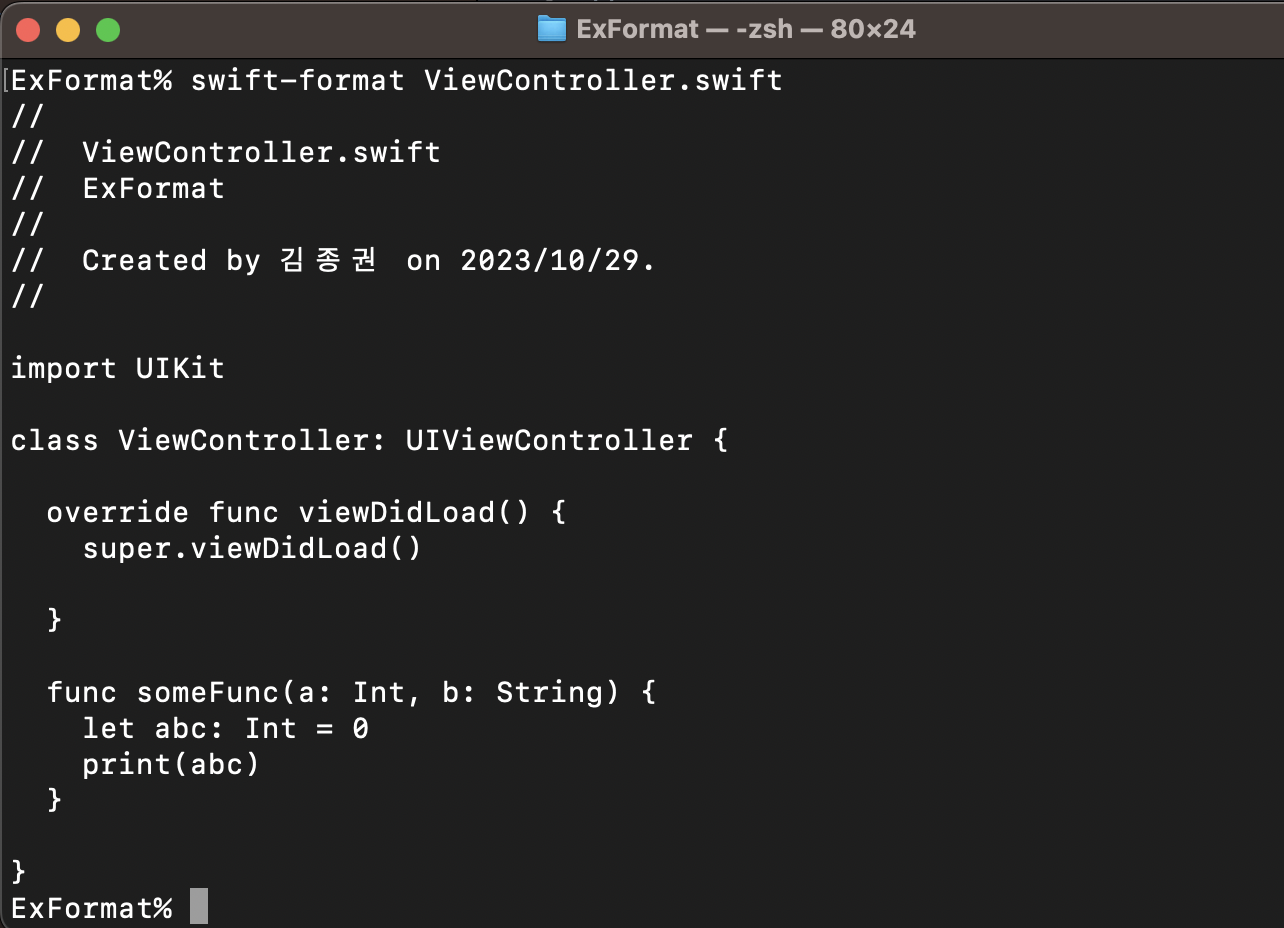 - swift-format 명령어에 -i를 추가하면 코드에 바로 적용이 가능