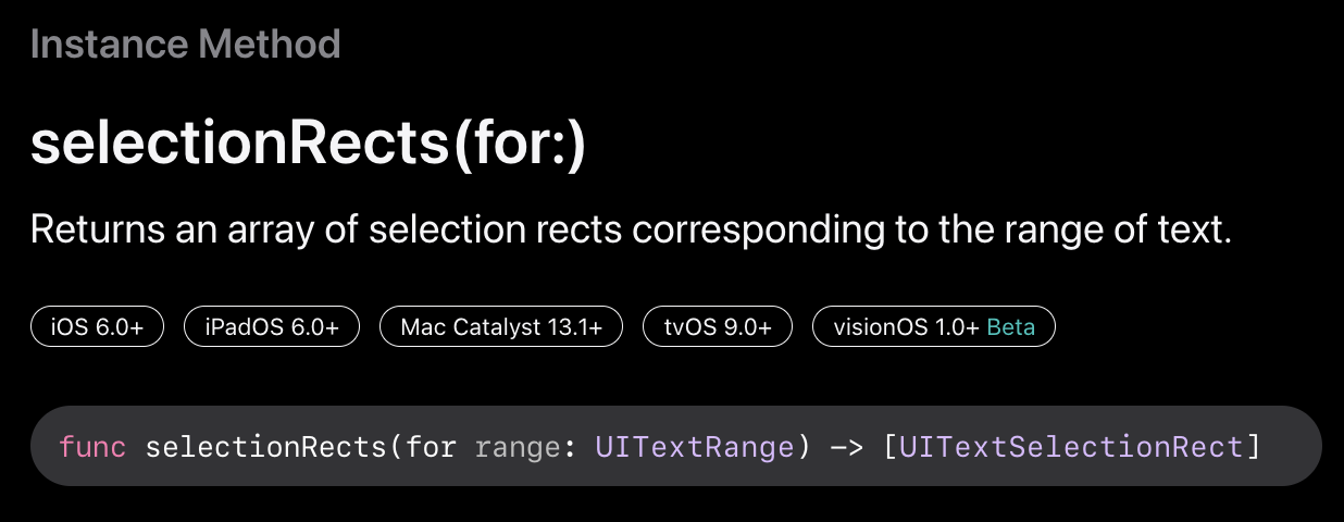 https://developer.apple.com/documentation/uikit/uitextinput/1614458-selectionrects