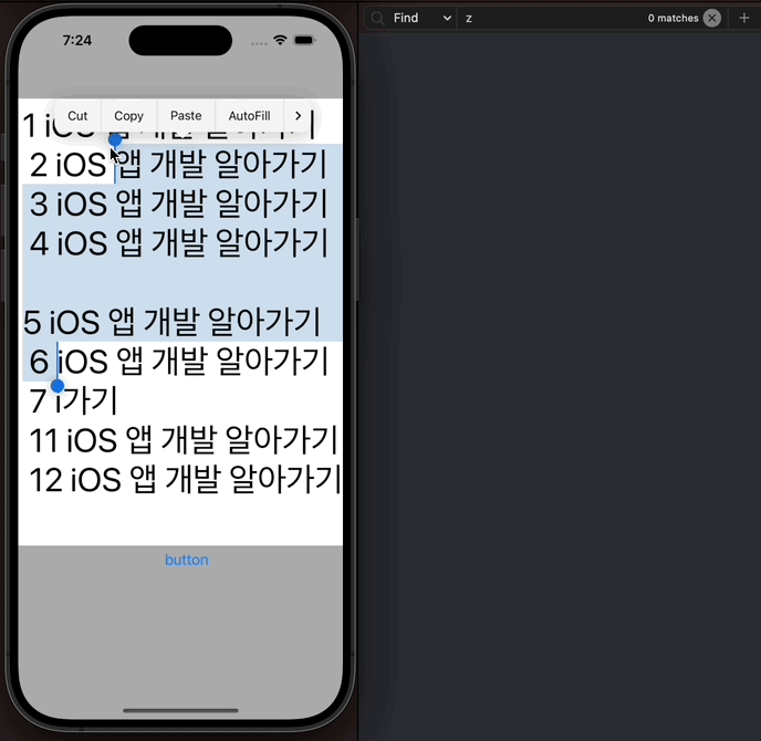 - 심지어 textView.selectedRange값을 계속 print해보아도 cursor를 놓았을때만 변경되는 버그가 존재