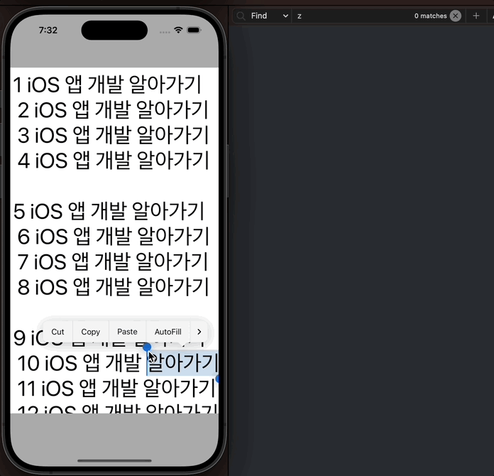 결과) iOS 17에서도 실시간으로 cursor가 변경하는것 확인이 가능