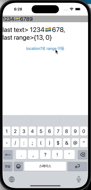 - 아래처럼 버튼을 탭했을때 이동하도록 offset 7을 주면 7번째 글자가 아닌, utf16 기존 길이가 7인곳으로 이동