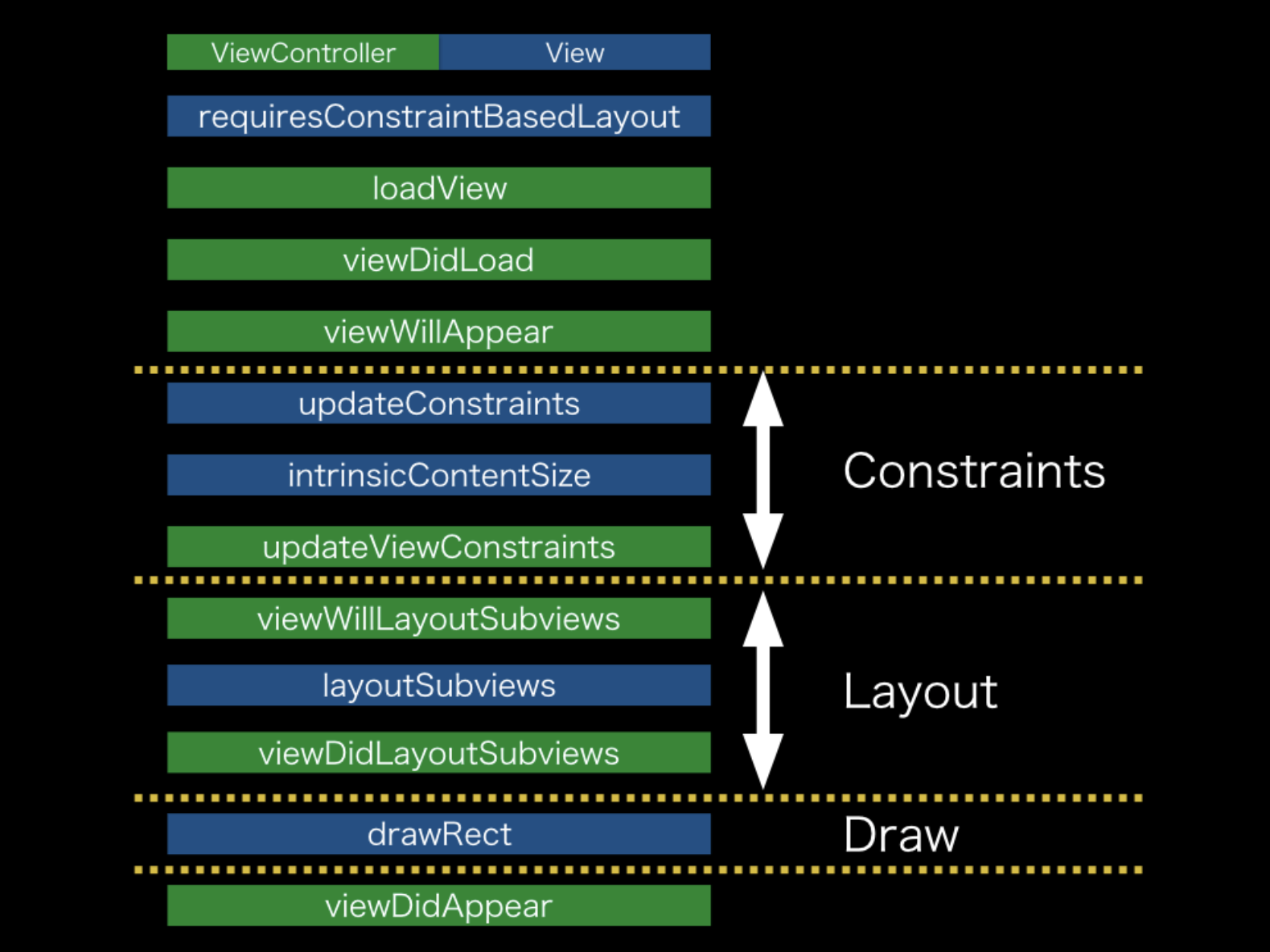 이 메소드는 위에서 레이아웃을 재배치할 때 사용되는 UIView의 메소드 (expensive하기 때문에 다른 메소드를 통해 간접적으로 호출)