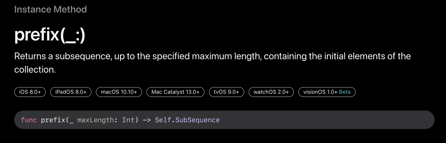 - https://developer.apple.com/documentation/swift/string/prefix(_:)