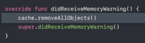 - NSCache를 사용하고 있다면, didReceiveMemoryWarning에서 cache의 데이터들을 removeAllObjects()하여 핸들링이 필요