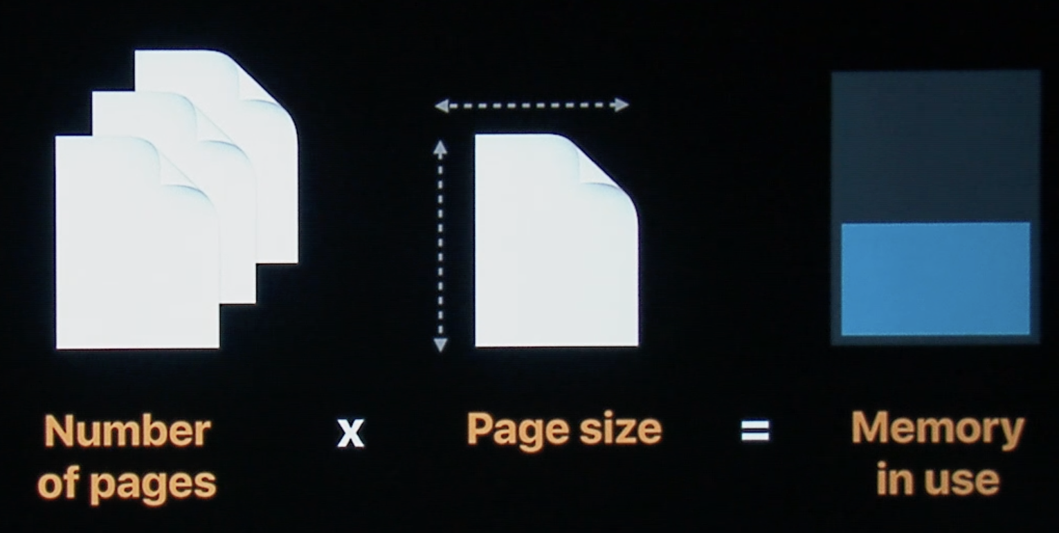 - 앱의 메모리 사용량 = page 수 * 페이지 크기 (16K)