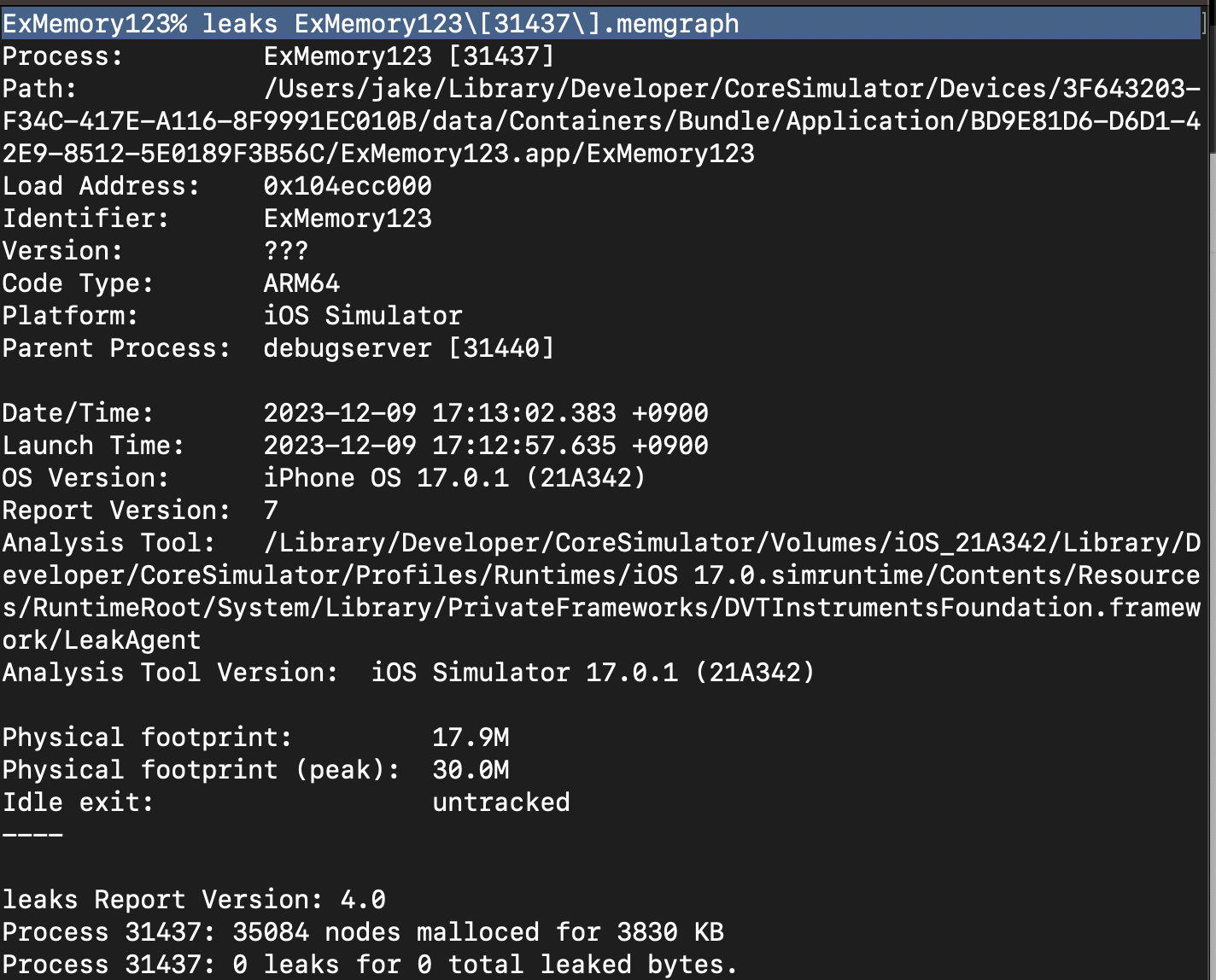 vmmap ExMemory123\[31437\].memgraph