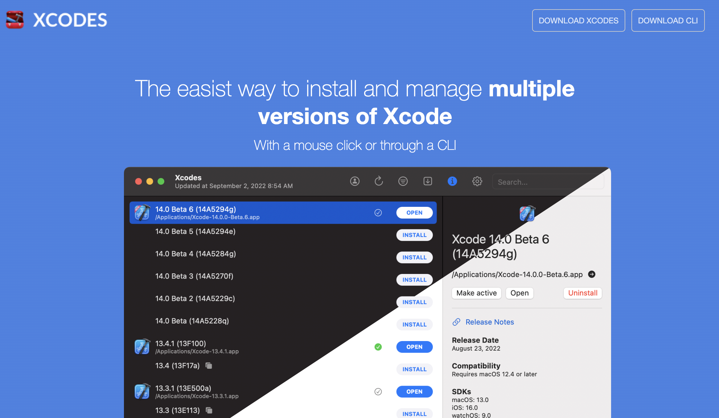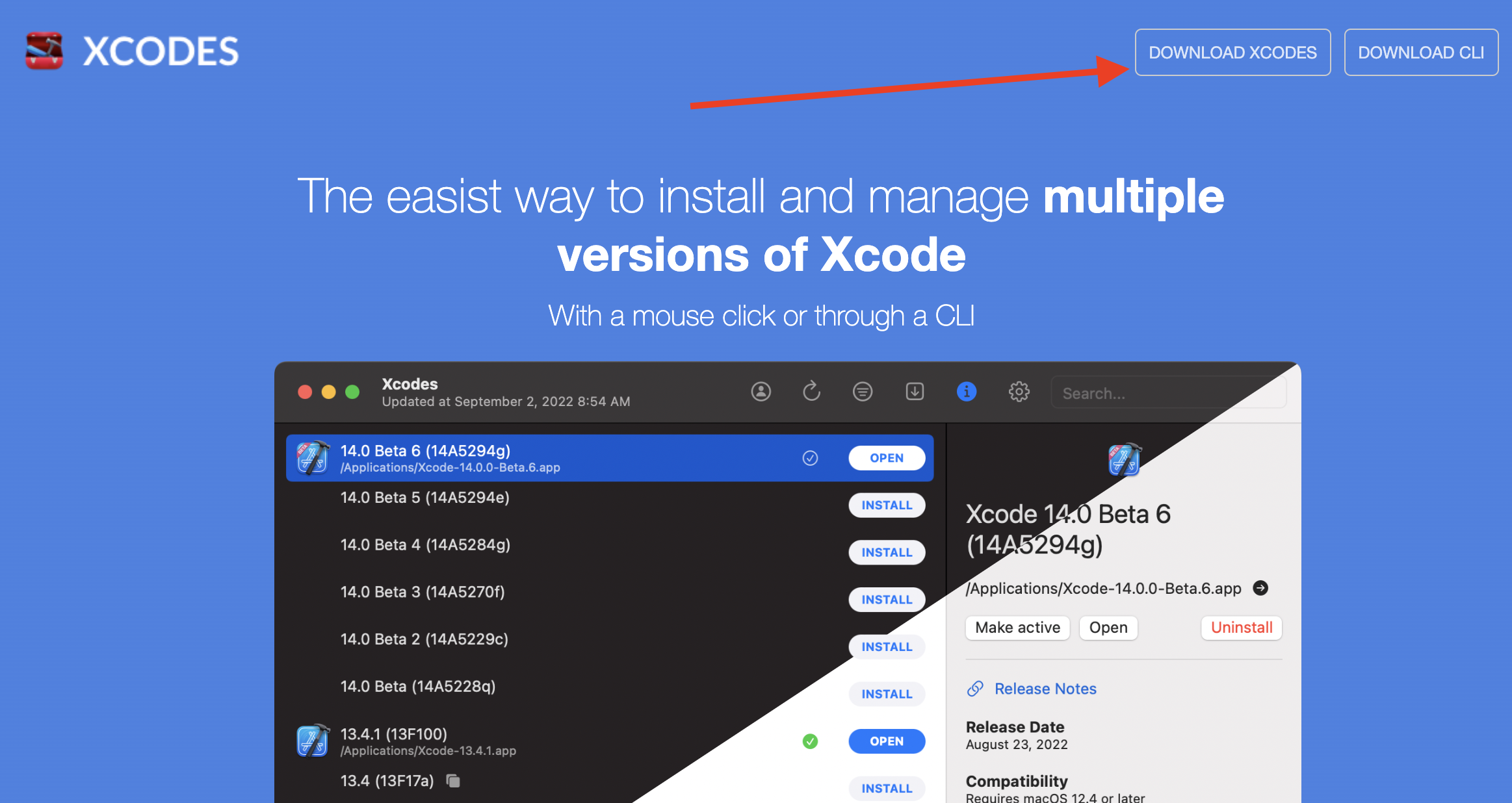 - Xcodes는 Xcode들을 관리해주는데 UI를 제공해주는 툴