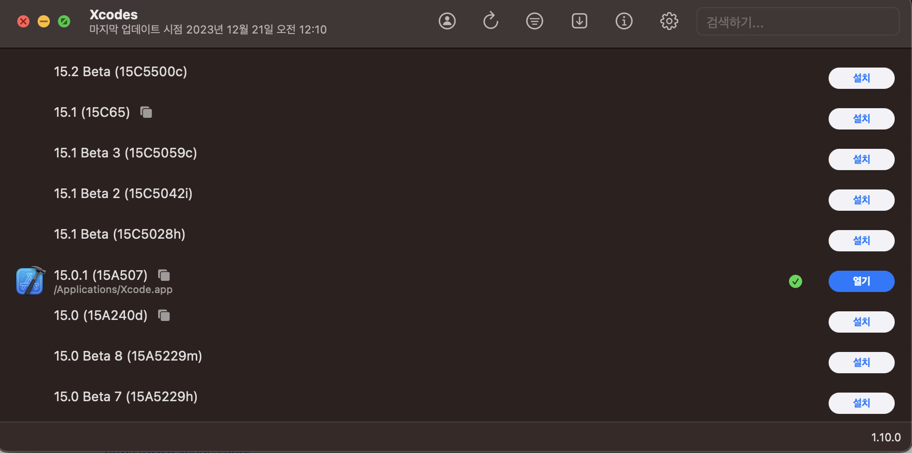 - 여러가지 Xcode 버전들이 있고 버전 업이 필요하면 이 화면에서 설치를 눌러도 가능