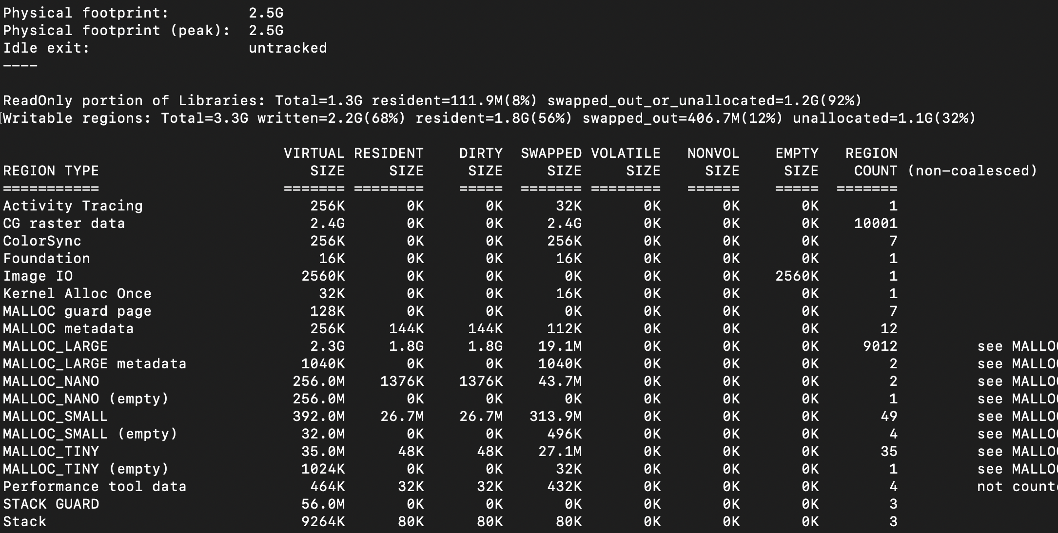 vmmap --summary ExImageOptimazationBackground\[23907\].memgraph