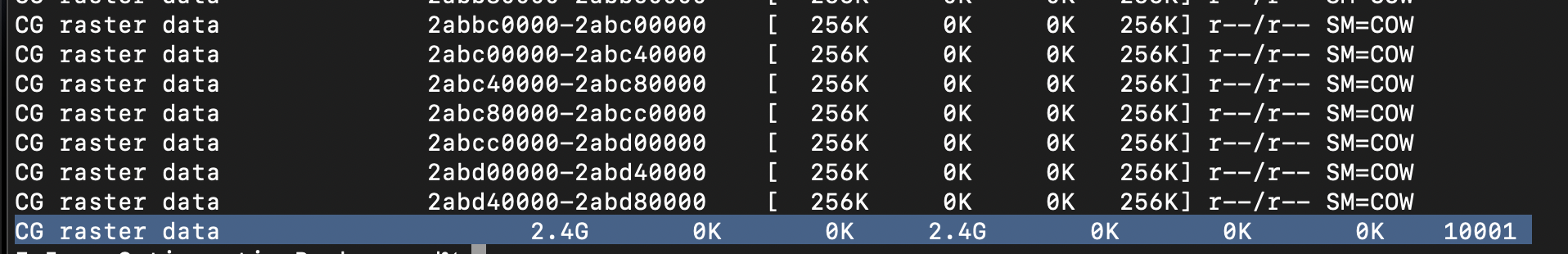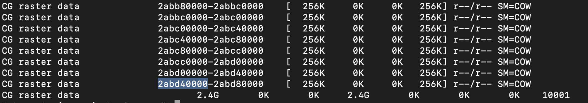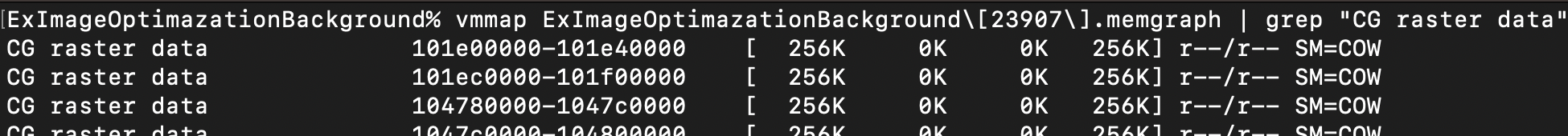 vmmap ExImageOptimazationBackground\[23907\].memgraph | grep "CG raster data"