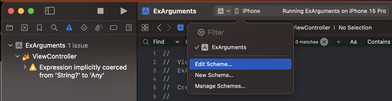- Xcode > Edit Scheme 클릭
